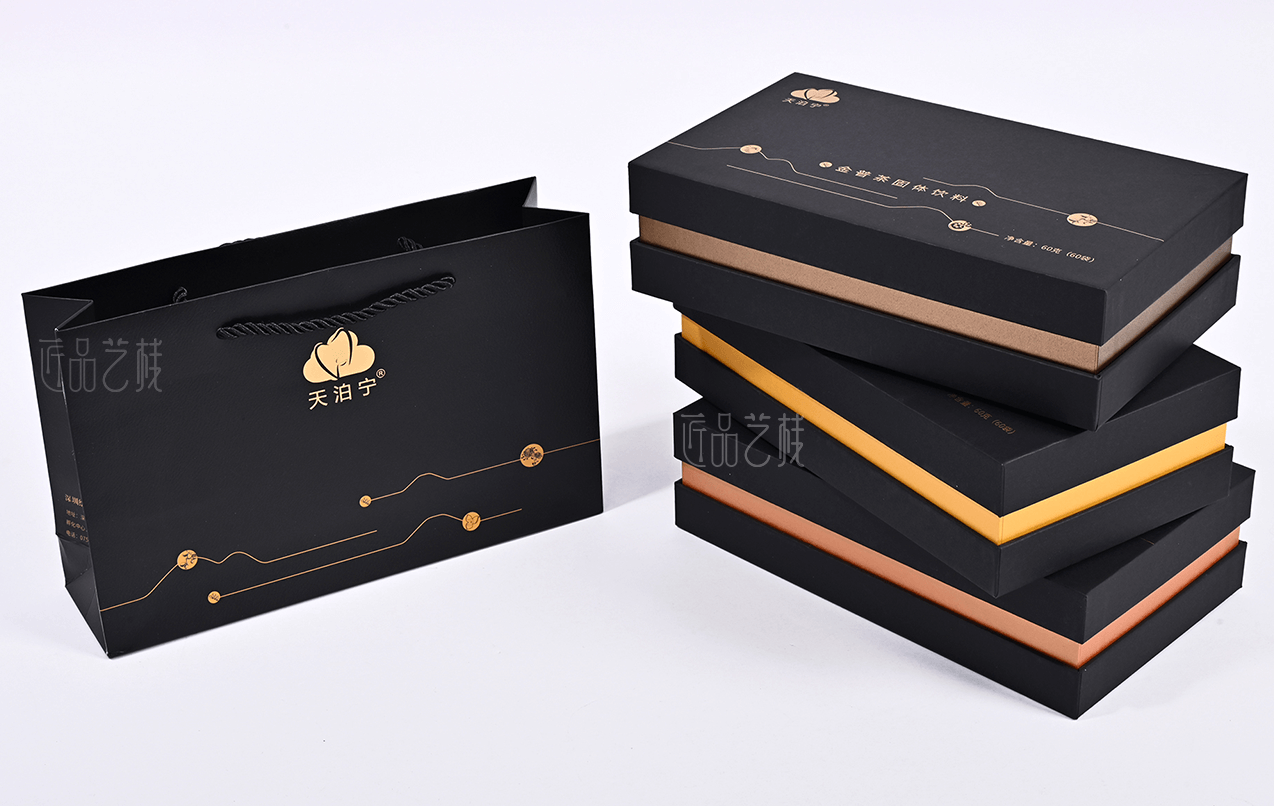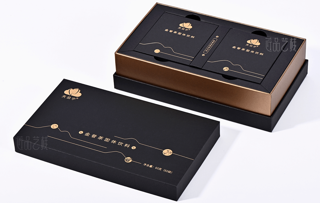 天泊寧茯苓普洱茶粉固體飲料品牌,選用云南高海拔優(yōu)質(zhì)大葉種普洱茶、上等優(yōu)質(zhì)茯苓為原料,經(jīng)現(xiàn)代生物技術(shù)加工而成。在其系列產(chǎn)品包裝盒設(shè)計(jì)印刷中,匠品藝棧采用普洱茶的黑色為統(tǒng)一主色,并根據(jù)不同產(chǎn)品分類采用不同顏色腰條為區(qū)分,使其整個(gè)系列產(chǎn)品包裝盒,既能形成統(tǒng)一的品牌視覺形象,同時(shí)又區(qū)分出鮮明的產(chǎn)品特色。