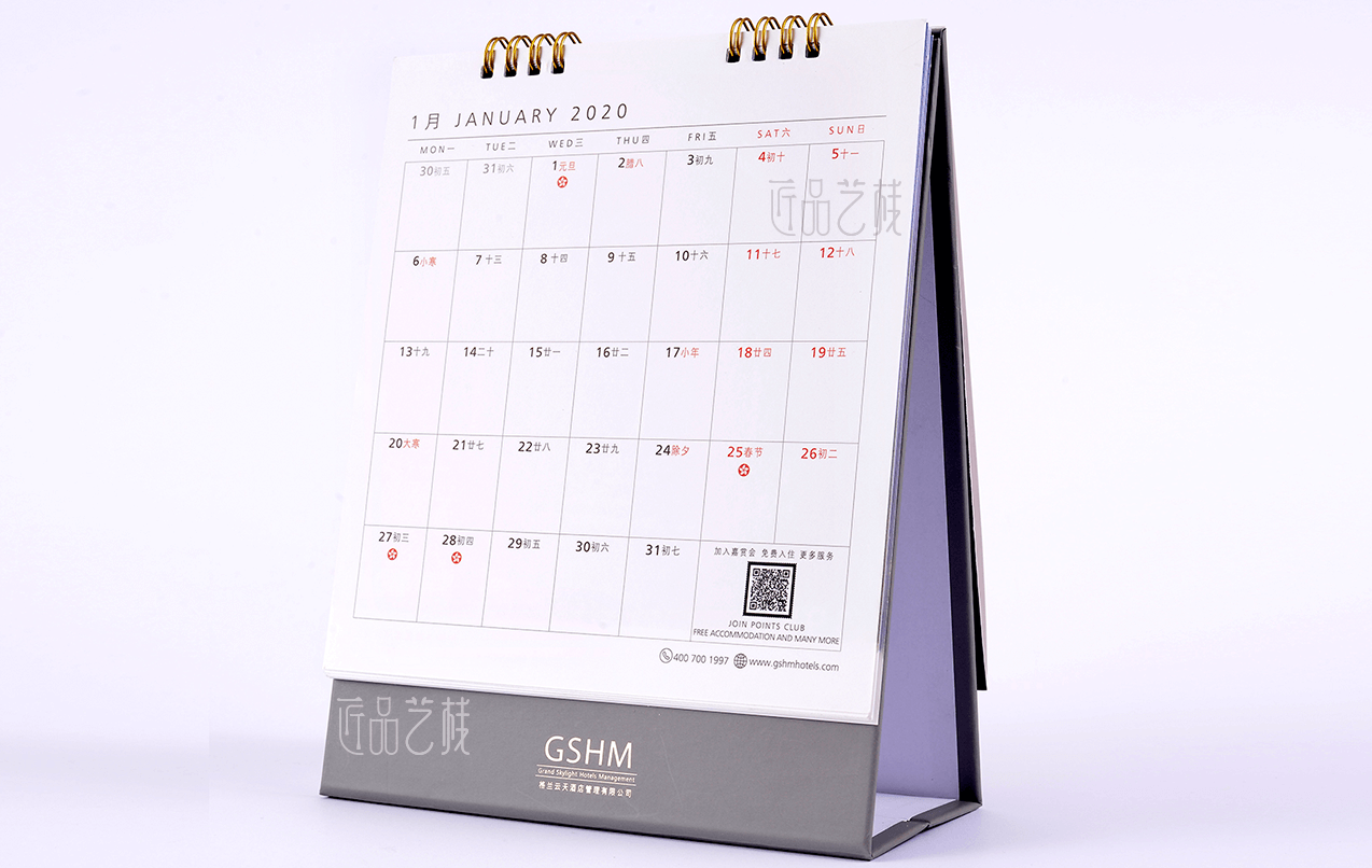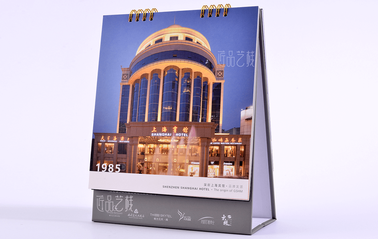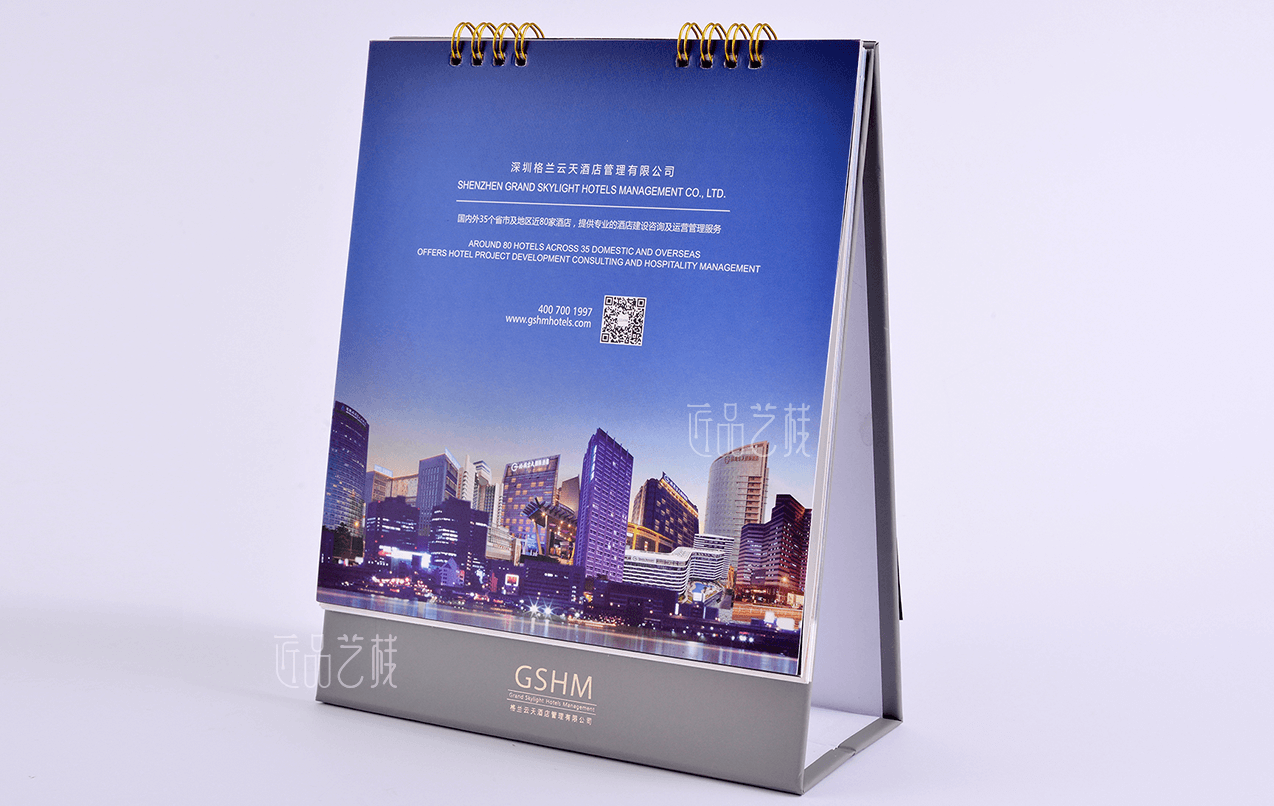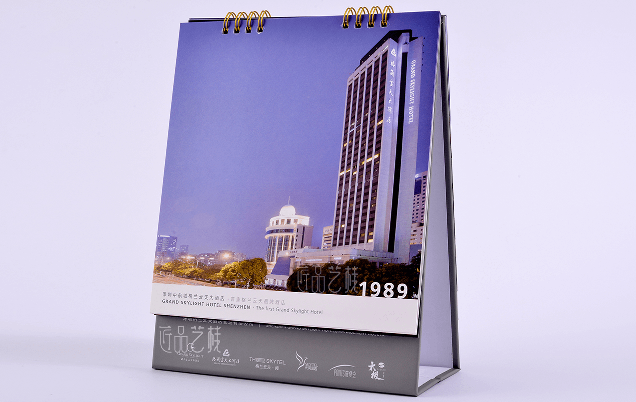 格蘭云天酒店管理公司致力于高端酒店市場,打造國內一流的民族酒店品牌和國際水準的酒店管理公司,在格蘭云天酒店的臺歷的定制中,亦采用高端的扣環精裝方式和特種紙張工藝等精制而成,亦是在專版臺歷與酒店臺歷訂做中的又一本高端臺歷印刷定制項目。