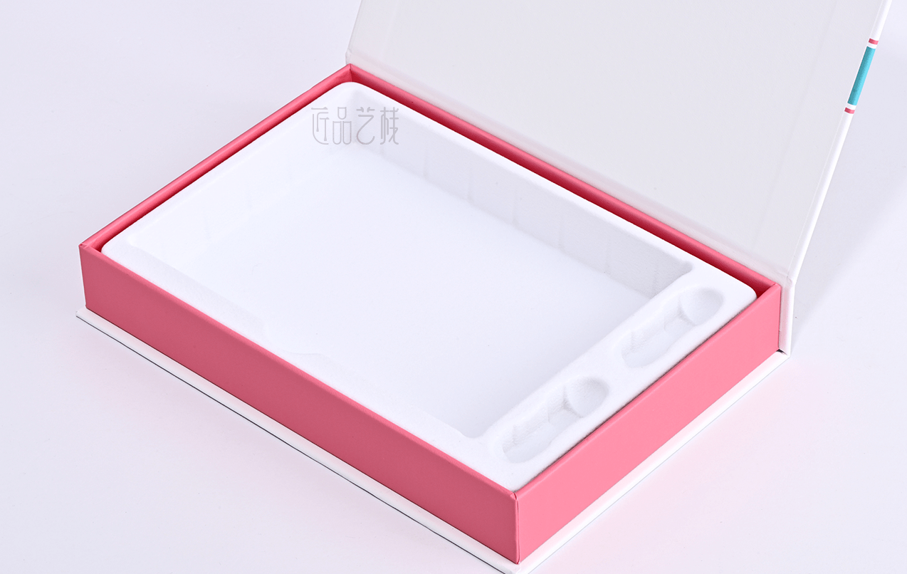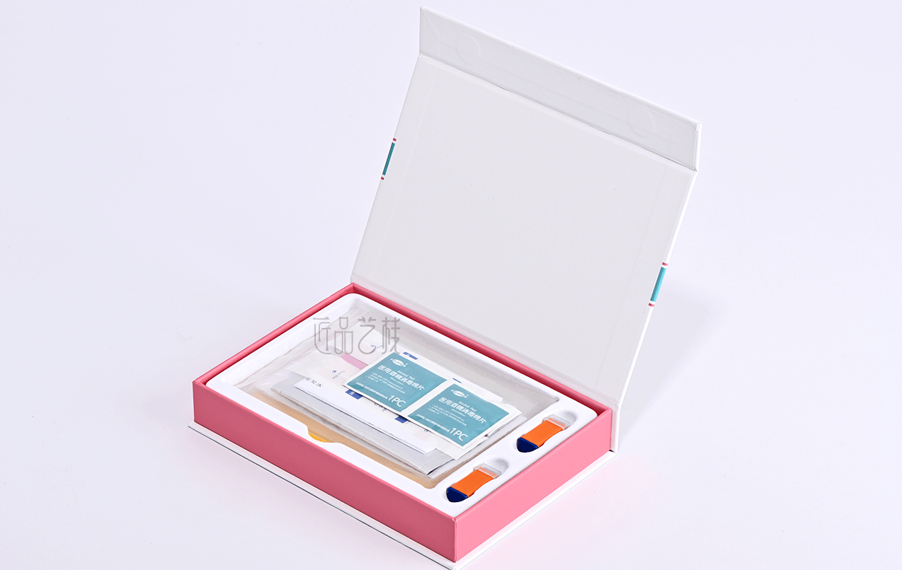 佳潤隆印刷&匠品藝棧,在與擁有一系列具有自主知識產權的體外診斷試劑盒、智能輔助軟件和健康飲品,并提供多項科研和醫學檢驗服務的繪云生物科技企業合作中,采用精致的吸塑合理設計其產品內呈現方式,以簡約的科技藍和產品血斑粉紅色為搭配設計,運用特種紙張和硬卡灰板搭配精裝制作而成,為該產品在大健康試劑檢測領域脫穎而出,提升產品給消費者的良好體驗和銷售價值。