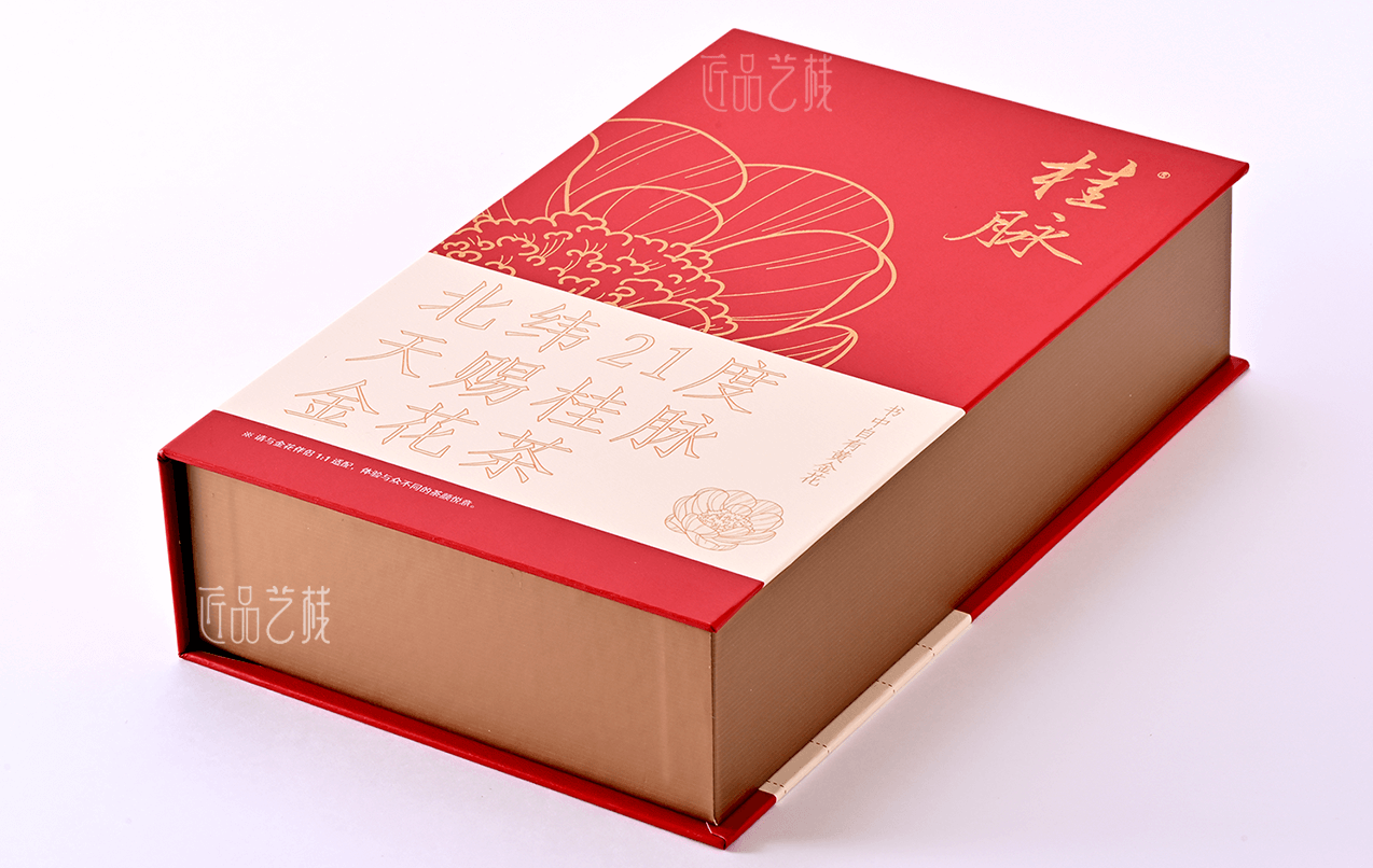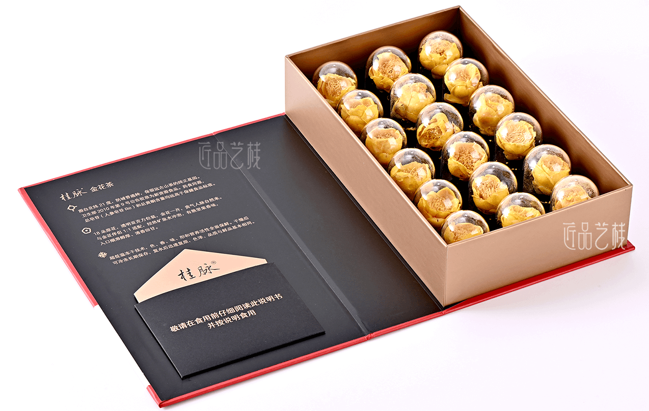 桂脈金花茶,源自北緯21度,新資源食品,部分含量遠高于保健食品標準。由佳潤隆包裝印刷&匠品藝棧提供本產(chǎn)品的包裝盒、手提袋和說明書等整套禮盒的方案設計與印刷制作,在比其原有包裝盒將近節(jié)省一半制作成本的同時,大力提高了該產(chǎn)品的溢價能力和銷售利潤。