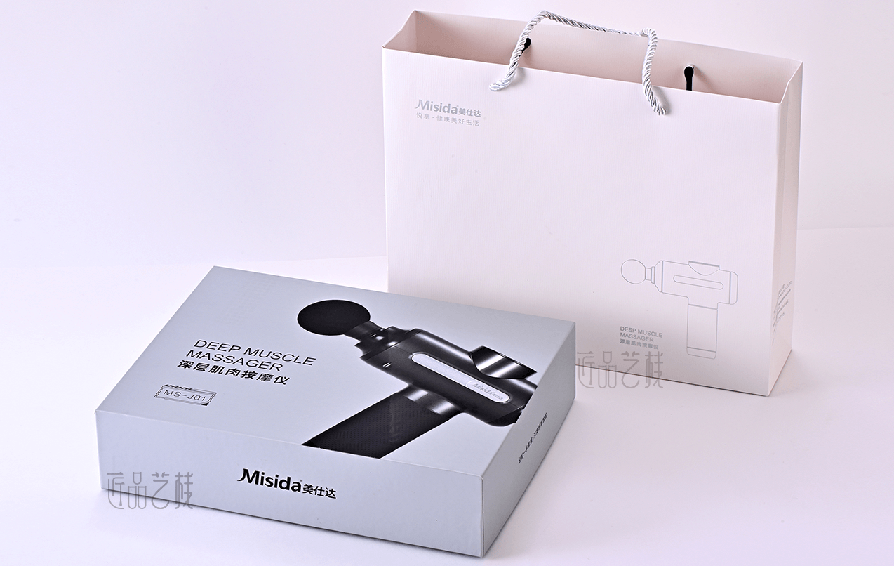 深圳悅來科技有限公司主打品牌——美仕達大健康品牌,佳潤隆包裝印刷&匠品藝棧長期合作企業之一,在其按摩儀產品包裝盒印刷定制中,我們采用硬卡紙精裝的方式,海德堡五色機專銀印刷,結合逆向UV等工藝,使其襯托出相應產品——深層肌肉按摩儀的厚重感和高端感,大力提升該產品在行業領域的競爭力和品牌氣質。
