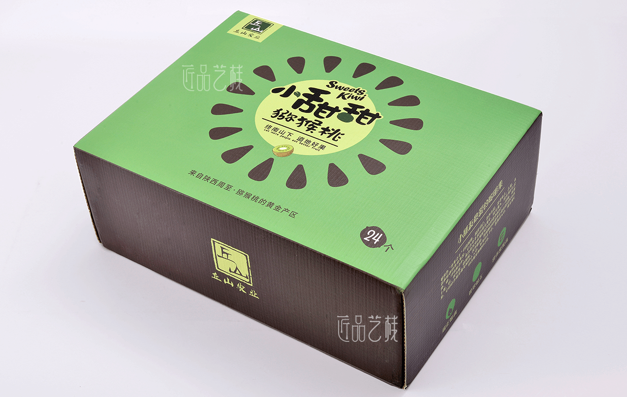 丘山農業獼猴桃,來自陜西周至黃金產區的精選好果,在其包裝紙盒訂做中,采用瓦楞紙制作天地蓋禮盒的模式,運用白卡紙彩印后精裱a級瓦楞,通過模具的結合制作成天地蓋禮盒,達到即節省制作成本,又大氣美觀,送禮佳選的優良成效。